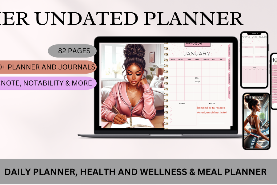 Whether you're a student, entrepreneur, mother, or dreamer, this all-in-one planner helps you take charge of your goals, habits, finances, health, routines, self-care, travel plans, and more. Designed to balance your ambition with well-being, this digital planner blends productivity with purpose so you can manifest a life you love.